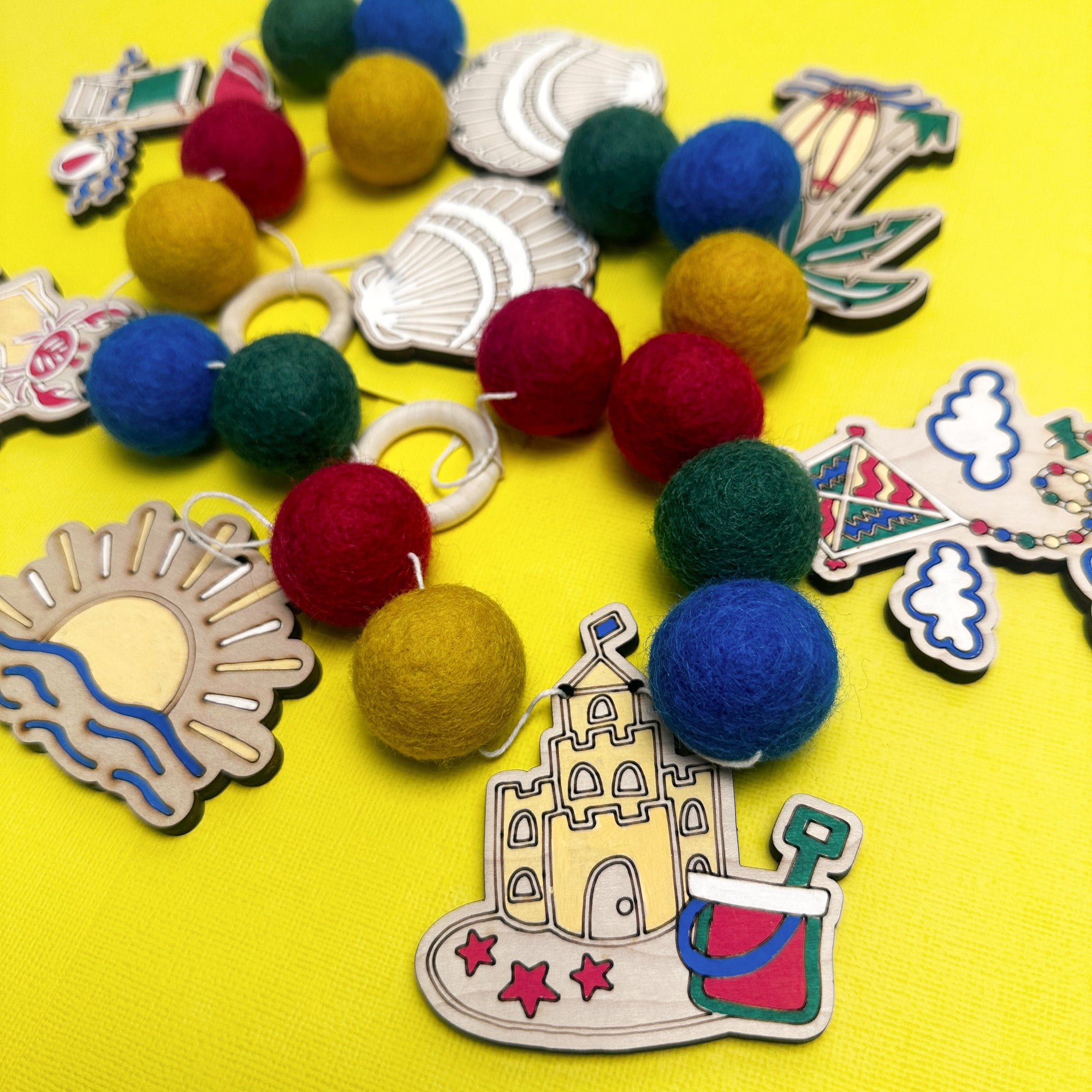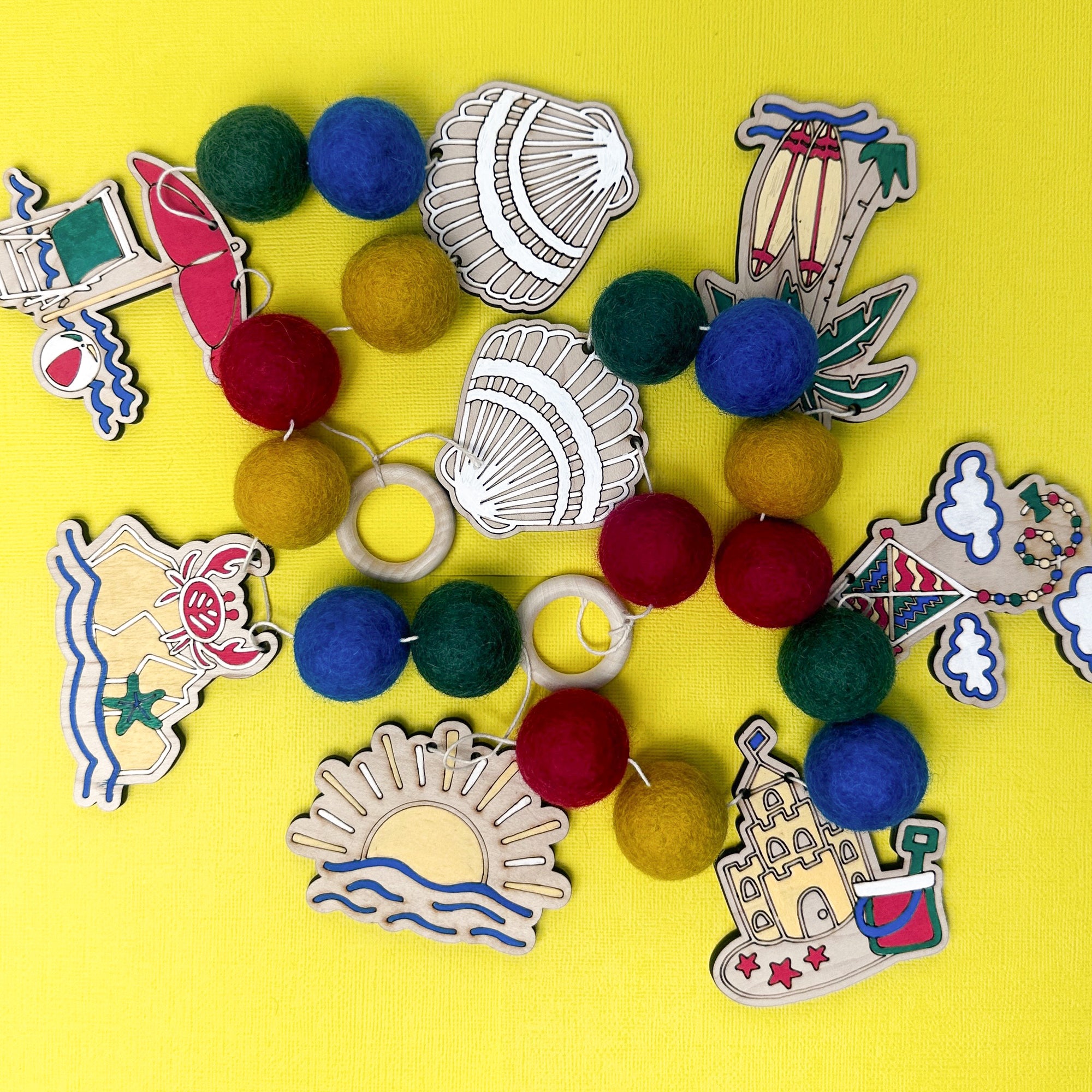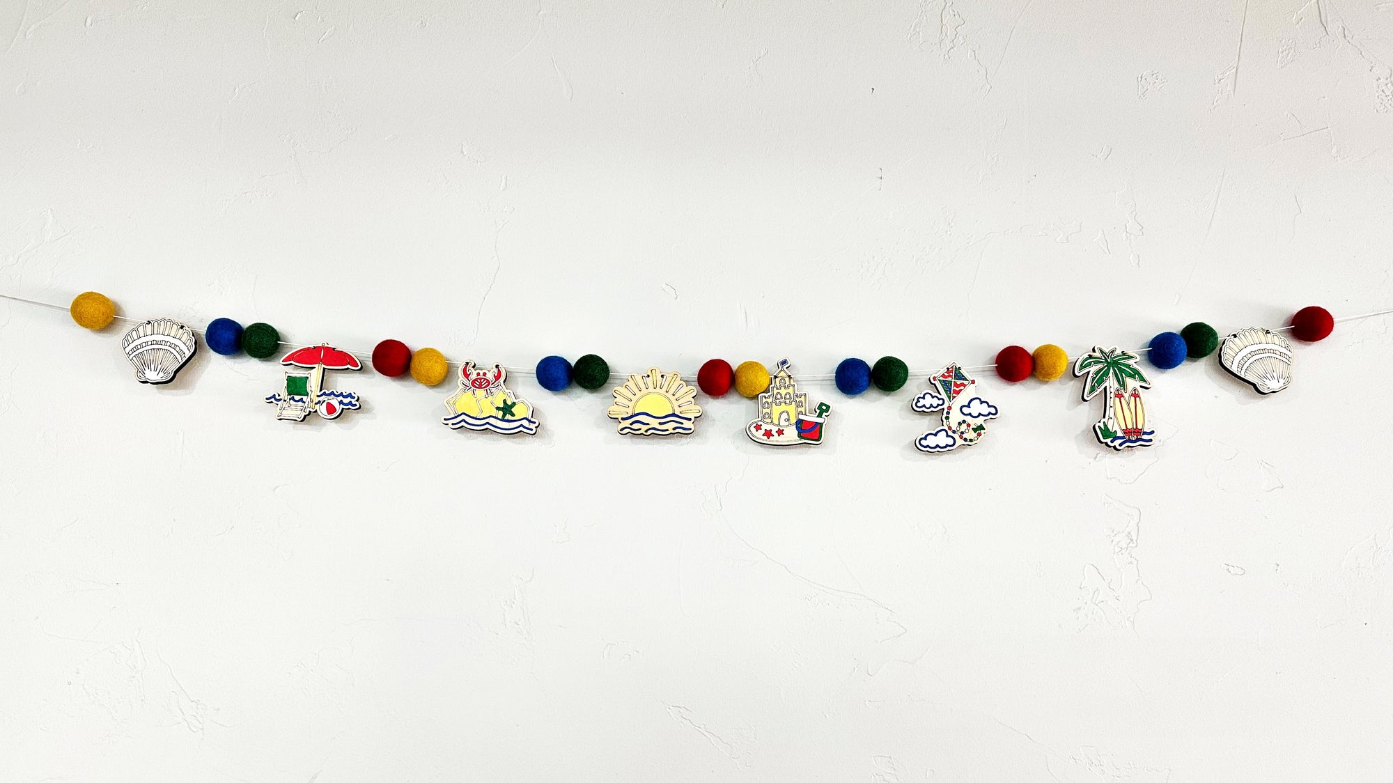Bring the seaside to your craft table with the Beach DIY Garland Kit—a fun, hands-on project that celebrates all things sun, sand, and surf. Featuring pre-cut wooden shapes like flip-flops, surfboards, beach umbrellas, seashells, and more, this kit is the perfect way to add a splash of summer fun to any space.