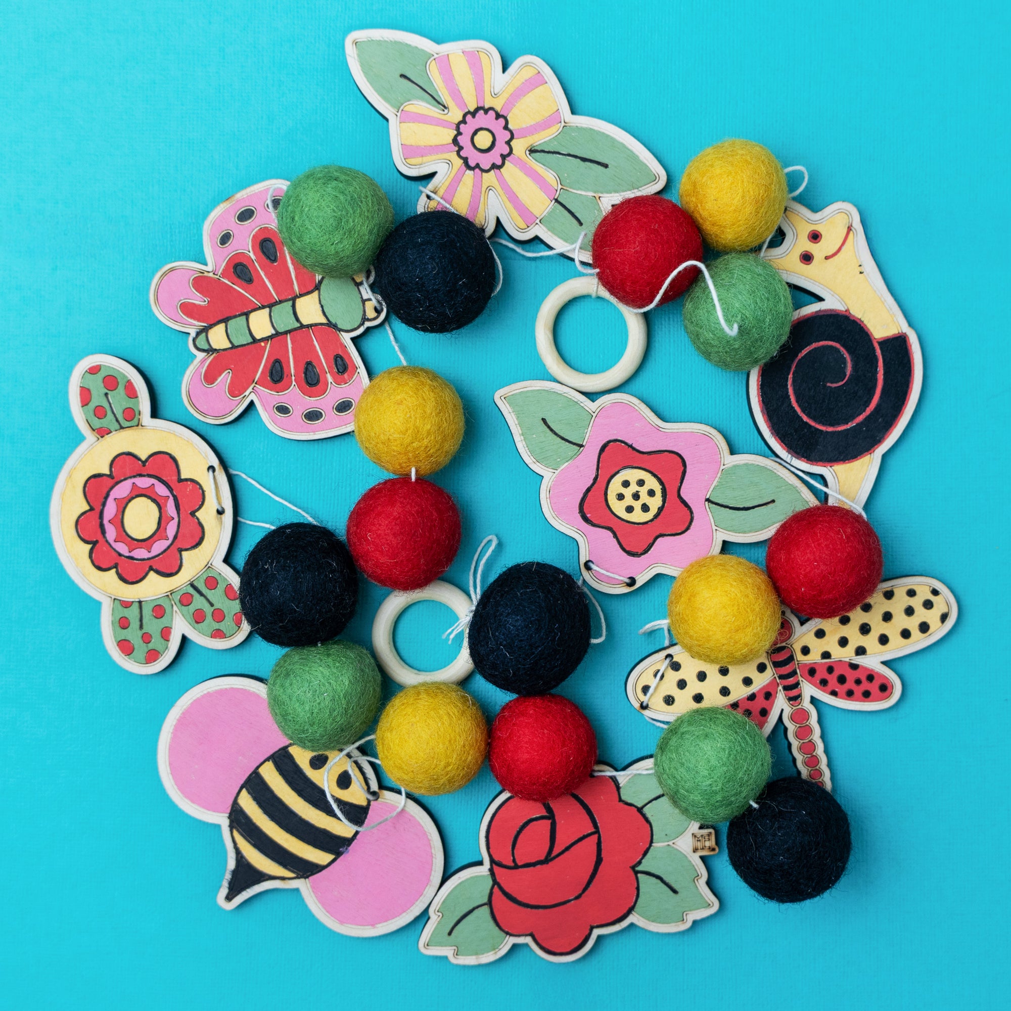 • 16 felt balls in sunny, garden-fresh colors