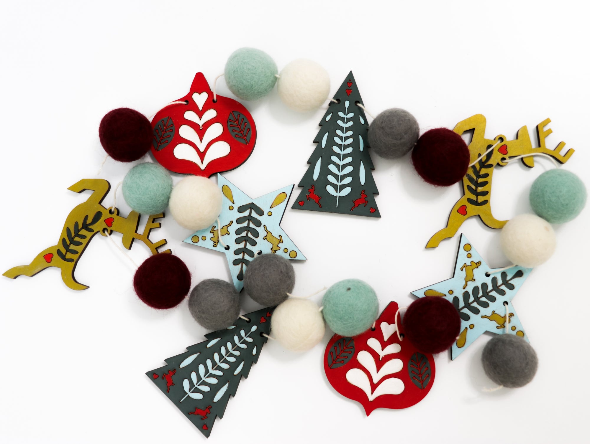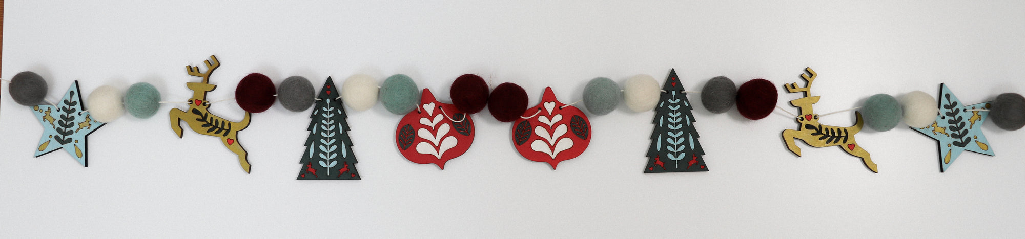 Bring timeless Nordic charm to your holiday decor with our Vintage DIY Garland Kit. Inspired by the cozy simplicity of Scandinavian winters, this kit features folk-inspired motifs like ornaments, stars, trees, and reindeer icons in clean, minimal shapes.