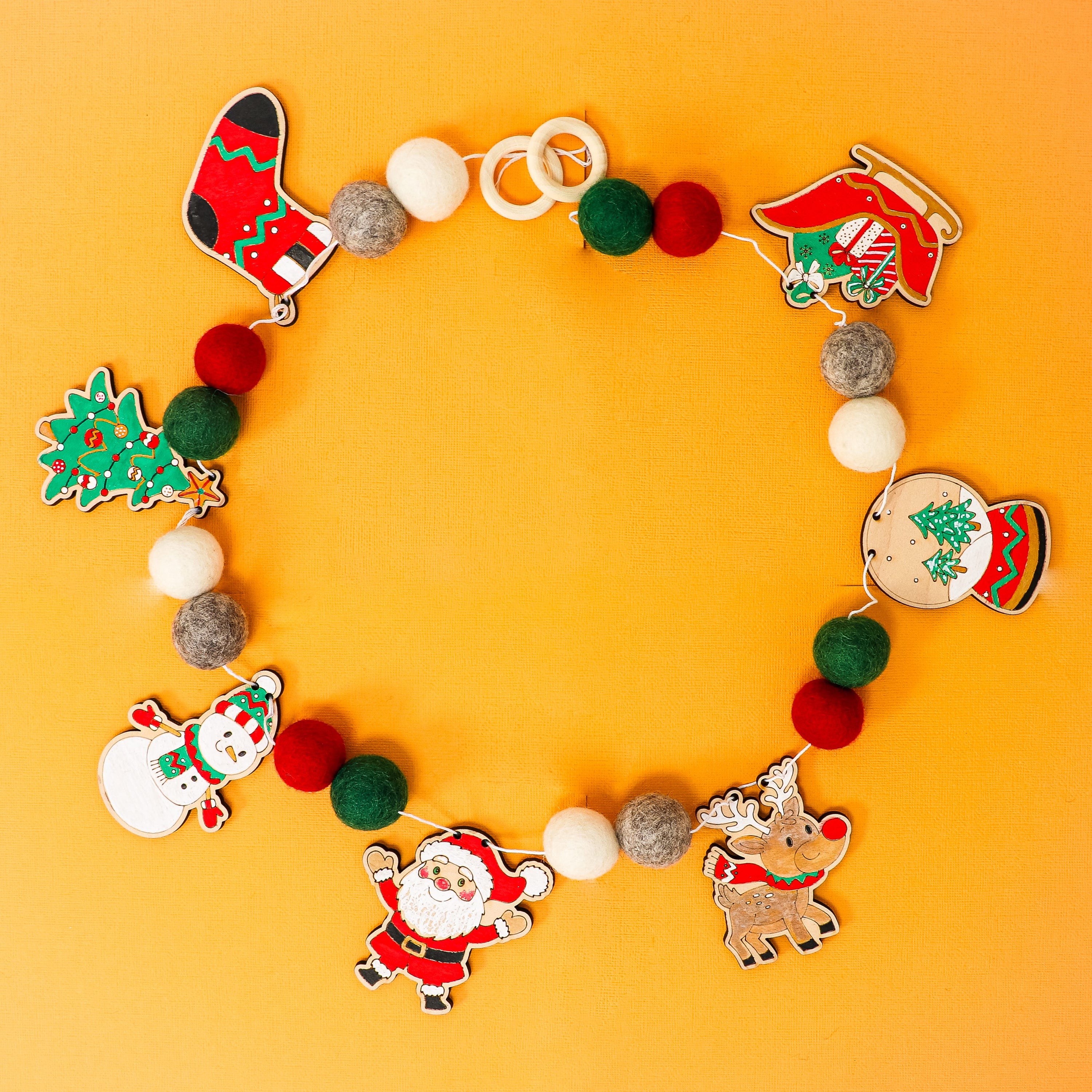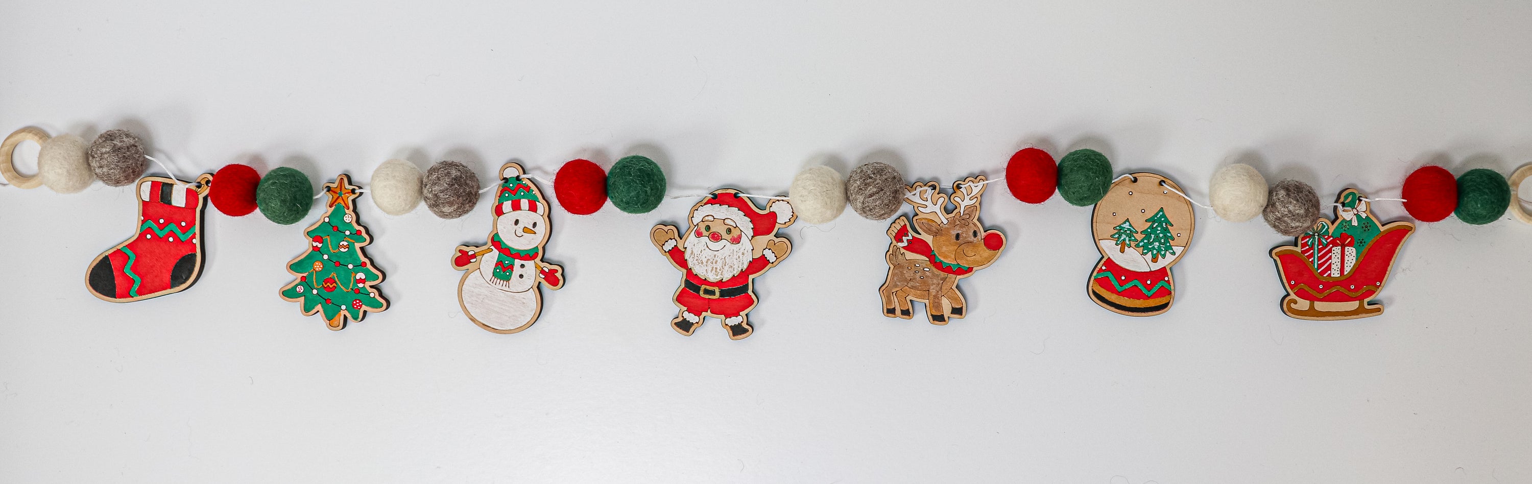 Bring the magic of the season home with our Very Merry DIY Garland Kit — a joyful celebration of all things Christmas! Featuring beloved holiday icons like Santa, Rudolph the reindeer, a snowman, Christmas tree, stocking, Santa’s sleigh, and a snow globe, this kit has everything you love about the holidays strung together in one creative project.