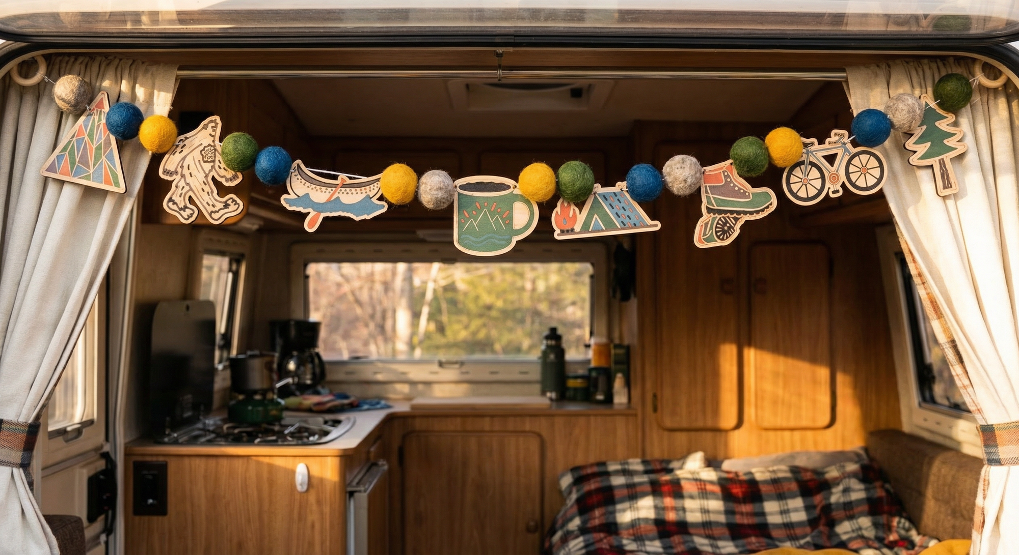 Get ready to explore the great outdoors from the comfort of your home with our Adventure DIY Garland Kit! Designed for nature lovers, little explorers, and crafty families, this eco-friendly kit features pre-cut wooden shapes like the one and only sasquatch, mountains , backpack, lantern, pine trees, and more.