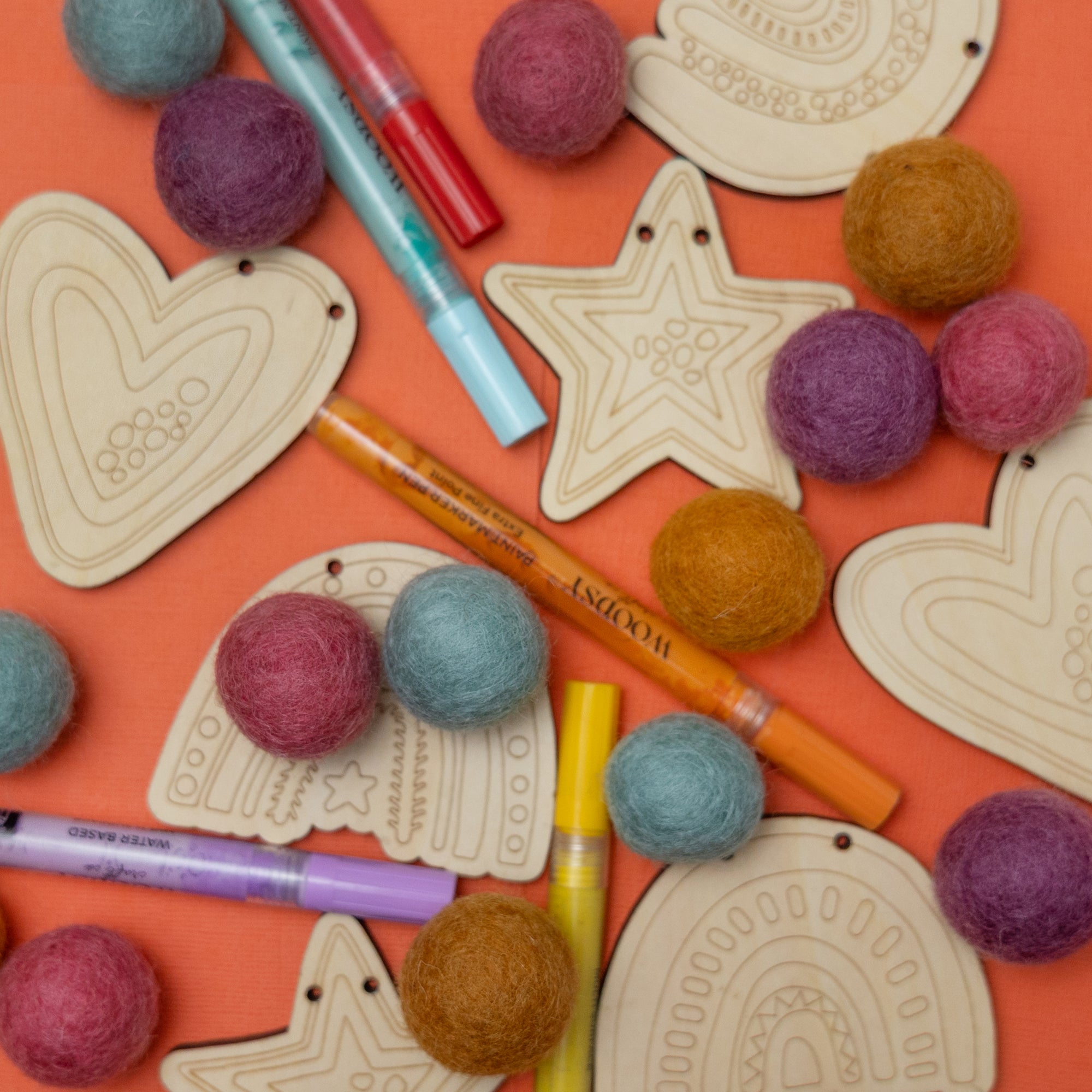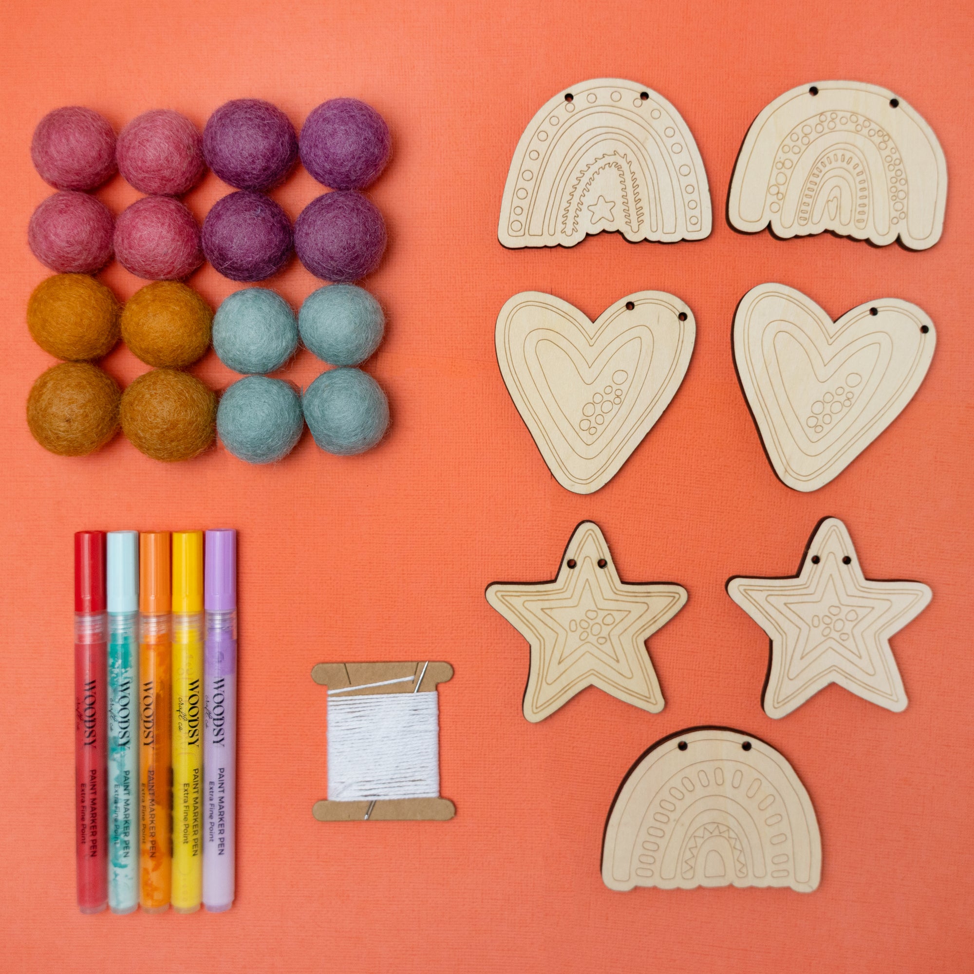 Bring a pop of color and joy to your space with the Rainbow DIY Garland Kit! This feel-good craft is perfect for kids, adults, and anyone who loves a little extra brightness in their day. Featuring pre-cut wooden rainbows and hearts—plus colorful felt balls and vibrant markers—this kit makes it easy to create a garland that’s as unique as you are.
